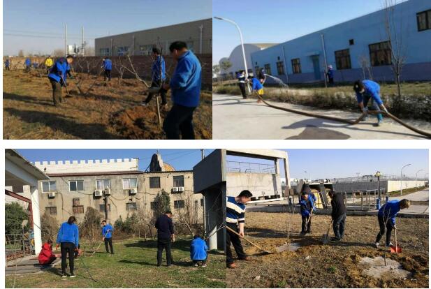 在這陽春三月、春暖花開、萬物呈現勃勃生機之際,李齊文總經理帶領新鄭分公司職工給去年種下的桃樹、梨樹、杏樹、石榴樹、核桃樹除草、施肥、澆水。迷人的春天是令人歡欣鼓舞的,植樹現場也描繪出了一幅幅緊張有序、熱火朝天的勞動畫面。大家舉起鋤頭,拿起鐵鍬,擼起袖子加油干。職工們分工明確、各司其職,又配合默契、銜接有序,個個忙得滿頭大汗,樣樣做得認真到位。