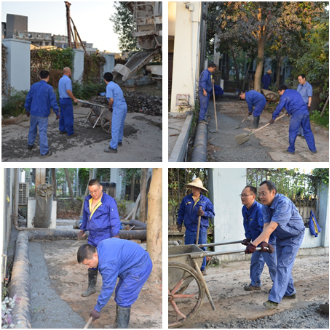 因污水處理產生的垃圾味道極其難聞,在整個活動過程中,大家始終保持“不怕臟、不怕臭、不怕累”的精神,戴著口罩,拿著掃把、鐵鍬、推車等工具,將灑落在垃圾屋周圍的細砂、纖維物等垃圾一一清掃裝車,集中至堆放處。同時,因垃圾屋周圍雜草叢生,不僅滋生蚊蟲,晚上還容易招來蛇鼠,不僅給垃圾清理及運輸帶來很大難度,員工生命財產安全也存在極大隱患。為徹底解決此類問題,在降低成本,提高經濟效益的基礎上,按照改造升級方案,大家人人化身“搬運工”、“水泥工”,除草、清運、澆筑、抹平......齊心協力、熱情高漲......
