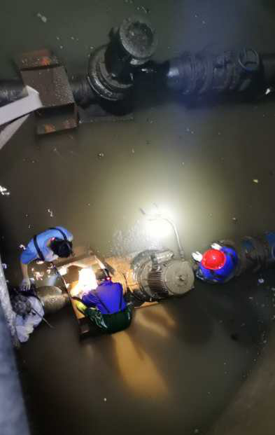 但是災難的來臨總是讓人防不勝防。從2020年7月6日起,績溪縣境內普降暴雨,多處地方發生山洪,7月7日凌晨3點,揚之河河水暴漲,沿途許多村莊進水,道路、農田被淹,多處供水供電設施被沖毀。凌晨4點,績溪廠的外部供電線路電塔被洪水沖倒,廠區隨即處于停電狀態,所有設備被迫停止運行,進水提升泵房隨后被洪水淹沒。事故發生后,績溪廠立即啟動突發重大環境事件應急預案,所有員工破除各種困難在第一時間返廠展開搶險救援工作,利用現有資源,組織人員對提升泵房積水進行抽離。8日凌晨2時,提升泵終于全部露出水面,在廠領導帶領下立即組織人員對3臺提升泵進行拆卸工作,并在提升泵電機全部拆卸下來后,立即送往專業的電機修理店進行清洗、烘干處理,同時安裝備用電機。經過30個小時的連續奮戰,第一臺備用提升泵電機在8日7時完成搶修安裝工作,并于17時左右恢復正常運行。為了保證水廠的正常運行,全廠男同志并沒有想著休息片刻,大家立即帶著滿身的疲憊又投入了第二臺提升泵的搶修工作中去。9日晚第二臺提升泵完成了搶修安裝工作,投入正常運行工作,并于9日9時,對提升泵房進行清掃工作,讓泵房的環境衛生煥然一新。 績溪廠提升泵房位于地下22米處,環境陰暗潮濕,空氣污濁,但是績溪廠的每一位干部職工不怕臟不怕累,通力協作,讓水廠在最短的時間內恢復生產,把企業的損失降到最低點,順利完成了這次抗洪搶險工作。