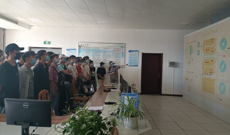 大學生們在中心控制室參觀了解污水處理工藝流程